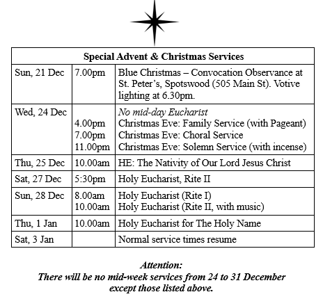 7:00pm Blue Christmas - Convocation Service at St. Peters Spotswood (505 Main St)